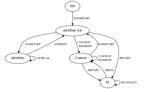 , and if it then turns out that the character was part of the CDATA contents, it returns both the "]" character and the following byte in the same data string. Similarly, if two "]" characters appear in sequence as part of the CDATA content, then the two characters are returned in a single data string together with the byte that follows. CDATA sections only appear in element contents, so this does not happen in attribute values or PI contents. - The special character "?" in PI contents. This is similar to the issue with "]" characters in CDATA sections. Yxml remembers a "?" character while parsing a PI, and then returns it together with the byte following it if it turned out to be part of the PI contents.