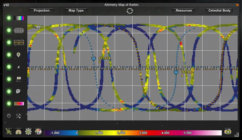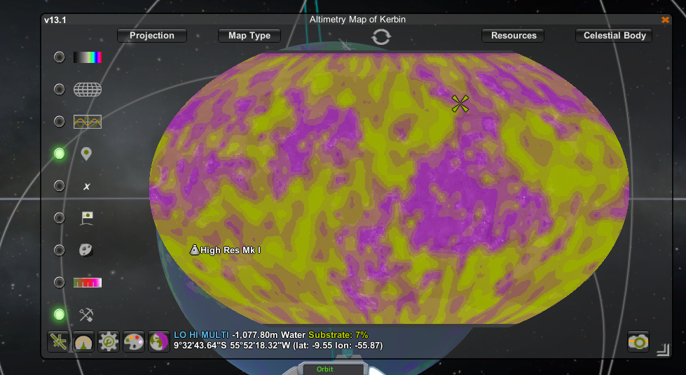 - It allows you to see surface details from orbit from an interactive, zoom-able map. This will help you plan your missions (for example, landing near a divider between two or three biomes) and provide critical information you need to attempt a safe landing (for instance, the slope map will help you avoid treacherous hills)