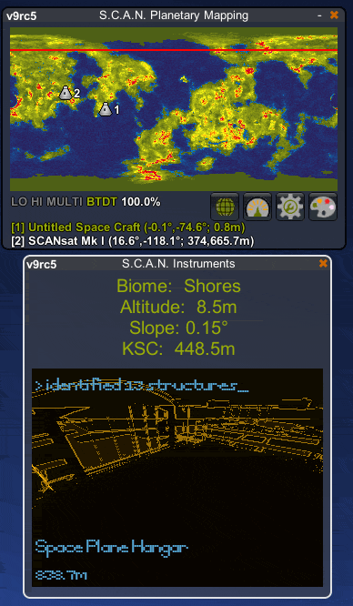 SCANsat can scan for a few basic types of data. All of these (non-resource) scans are shown as indicators on the Small Map. For more information about basic SCANsat scanning checkout the wiki
