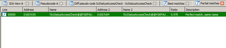 These are some screenshots of Diaphora diffing the Microsoft bulletin MS15-050, extracted from the blog post Analyzing MS15-050 With Diaphora from Alex Ionescu.