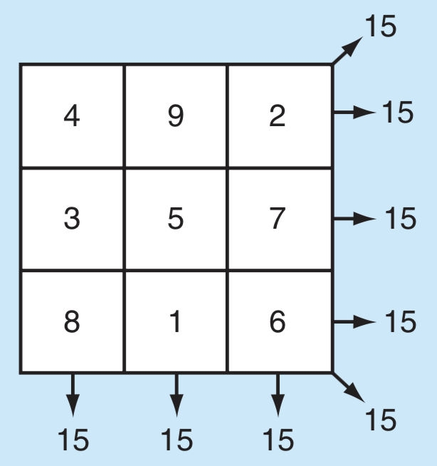 Lo Shu Magic Square is a 3x3 grid that contains the following properties: