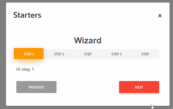 The wizard component Will show steps in certain order. Steps can contains any other components, html or whatever you want.