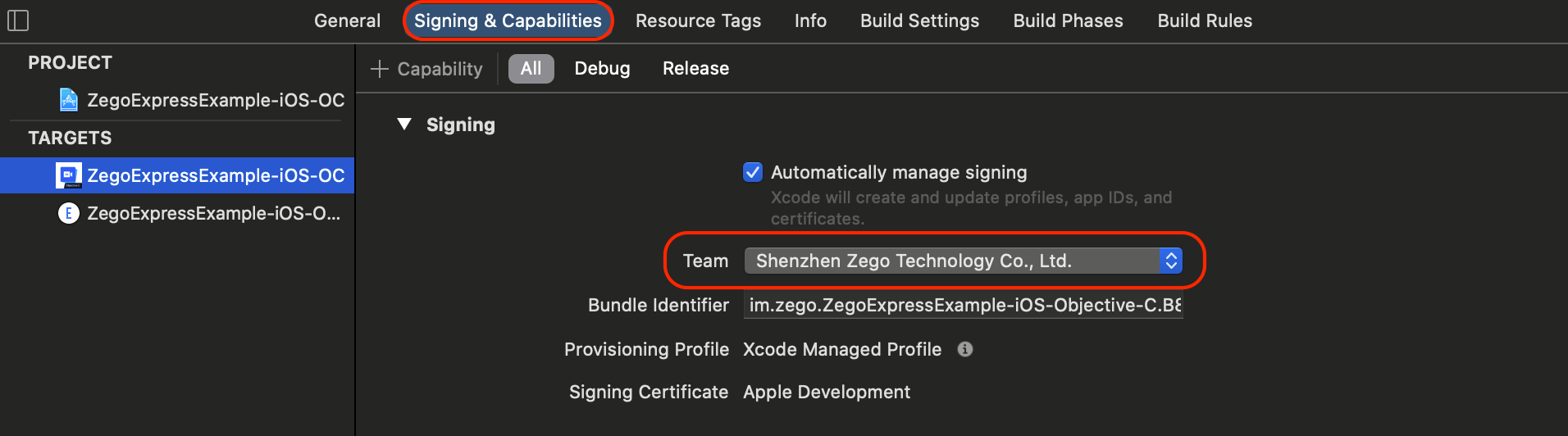 The app ID "im.zego.ZegoExpressExample" cannot be registered to your development team. Change your bundle identifier to a unique string to try again.