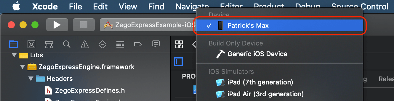 └── ZegoExpressExample.xcodeproj