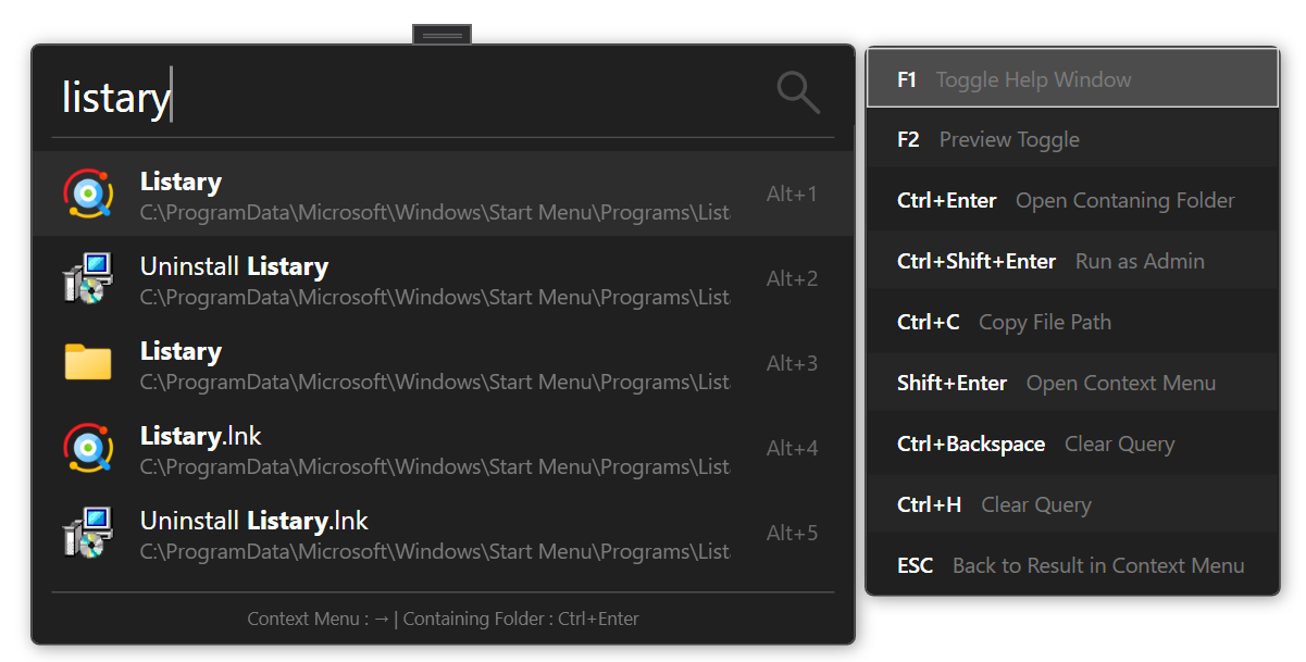 It automatically close when 1. open selected item 2. close main window 3. focus out. 4. F1 (it's toggle)