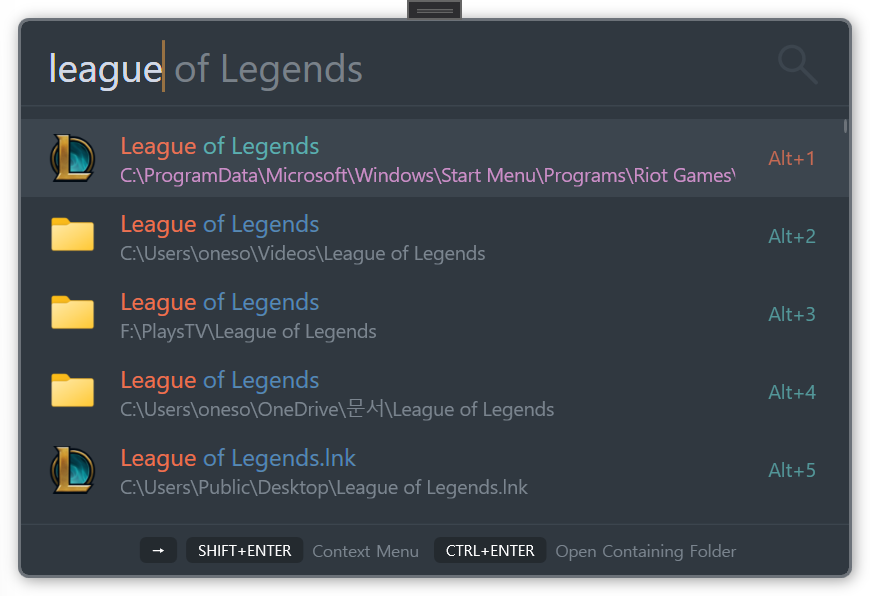 Users can turn it on at any time to view the result list along with the shortcut list.