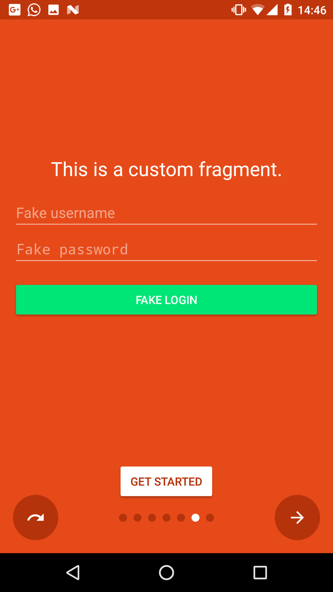 material-intro has fluent style builders for both a simple text/image slide, as seen in Google's apps, and for slides featuring a custom Fragment