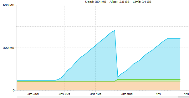 EntryEditor. After the patch I propose, the memory situation is vastly improvedWe need less than 400MB at the peaks and the GC seems to be able to do a much better job. It's not only an improvement in memory, but the performance increases dramatically.