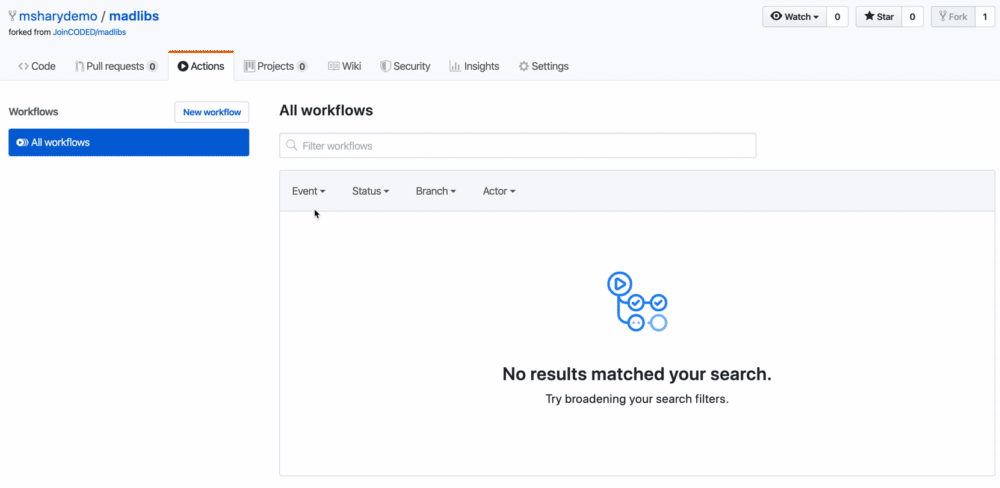 - Activate the GitHub Actions by going to the Actions tab and clicking the big green button.