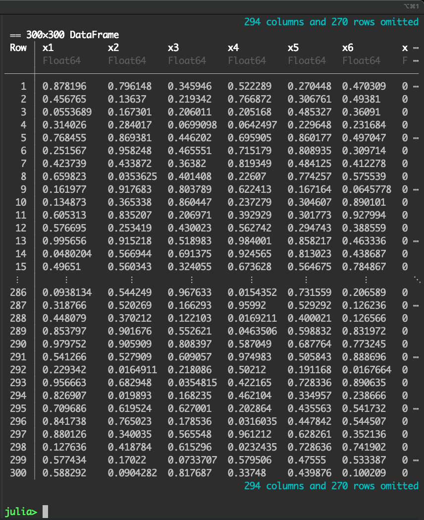 julia> @test df == df@mmiller-max points out (on Slack) that the printing change resulting from the PR were only briefly discussed (see this discussion). And that the conclusion was that changes to the printing code (which were originally in the PR to keep printing behaviour closer to what it was before the change) weren't really applicable to the PR and should be removed from the PR. So leaves it open for a further discussion, I think, what the actual printing behaviour should be.