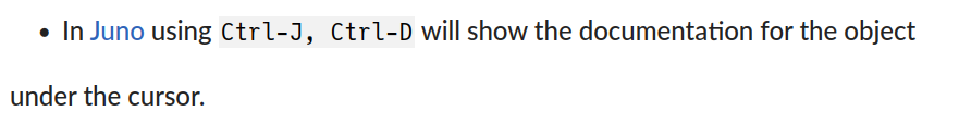 The end of the list item on "how to show object documentation in Juno" was broken in a separate paragraph.