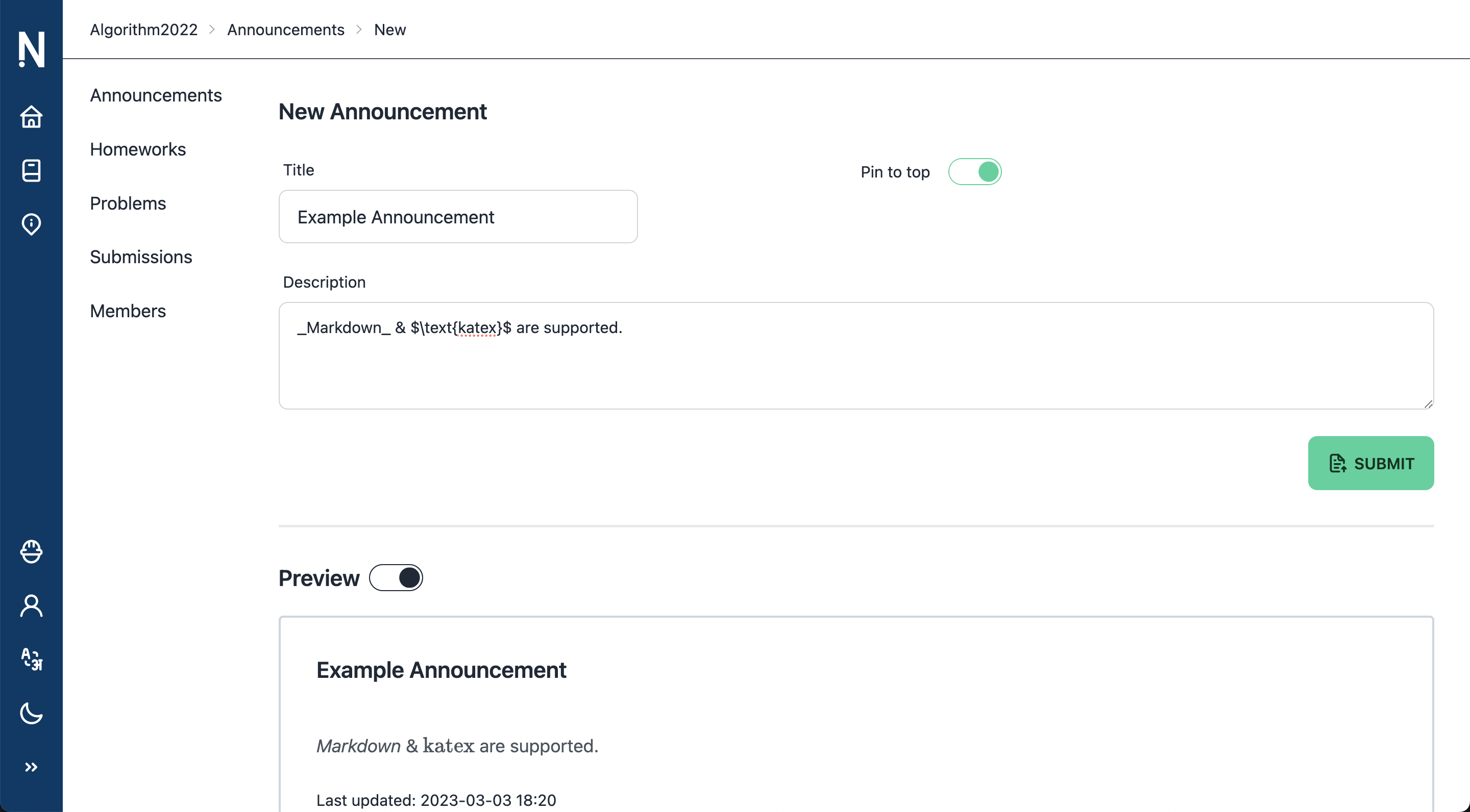NOJ's modern user interface is designed with usability in mind, making it easy for both teachers and students to navigate the platform and stay up-to-date on their progress. Also, we continuously improve the user experience by gathering feedback from users.