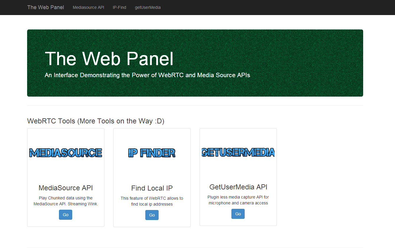 HTML5's WebRTC and MediaSource APIs make it possible to perform functions which were earlier not feasible from the browser. This panel has some cool features for which you would never have to open your command prompt again. Open the browser and Voila.