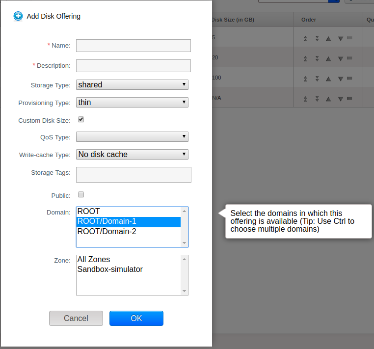 Updated disk offering details with domains and zones,