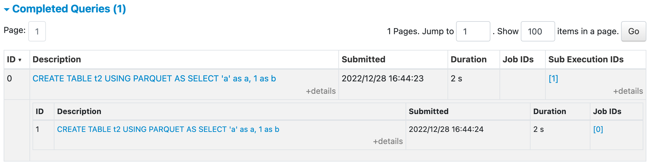 ### What changes were proposed in this pull request? This PR proposes to group all sub-executions together in SQL UI if they belong to the same root execution. This feature is controlled by conf `spark.ui.sql.groupSubExecutionEnabled` and the default value is set to `true` We can have some follow-up improvements after this PR: 1. Add links to SQL page and Job page to indicate the root execution ID. 2. Better handling for the root execution missing case (e.g. eviction due to retaining limit). In this PR, the sub-executions will be displayed ungrouped. ### Why are the changes needed? better user experience. In PR #39220, the CTAS query will trigger a sub-execution to perform the data insertion. But the current UI will display the two executions separately which may confuse the users. In addition, this change should also help the structured streaming cases ### Does this PR introduce _any_ user-facing change? Yes, the screenshot of the UI change is shown below SQL Query: ``` CREATE TABLE t USING PARQUET AS SELECT 'a' as a, 1 as b ``` UI before this PR <img width="1074" alt="Screen Shot 2022-12-28 at 4 42 08 PM" src="https://user-images.githubusercontent.com/67896261/209889679-83909bc9-0e15-4ff1-9aeb-3118e4bab524.png"> UI after this PR with sub executions collapsed <img width="1072" alt="Screen Shot 2022-12-28 at 4 44 32 PM" src="https://user-images.githubusercontent.com/67896261/209889688-973a4ec9-a5dc-4a8b-8618-c0800733fffa.png"> UI after this PR with sub execution expanded <img width="1069" alt="Screen Shot 2022-12-28 at 4 44 41 PM" src="https://user-images.githubusercontent.com/67896261/209889718-0e24be12-23d6-4f81-a508-15eac62ec231.png"> ### How was this patch tested? UT Closes #39268 from linhongliu-db/SPARK-41752. Authored-by: Linhong Liu <[email protected]> Signed-off-by: Wenchen Fan <[email protected]>