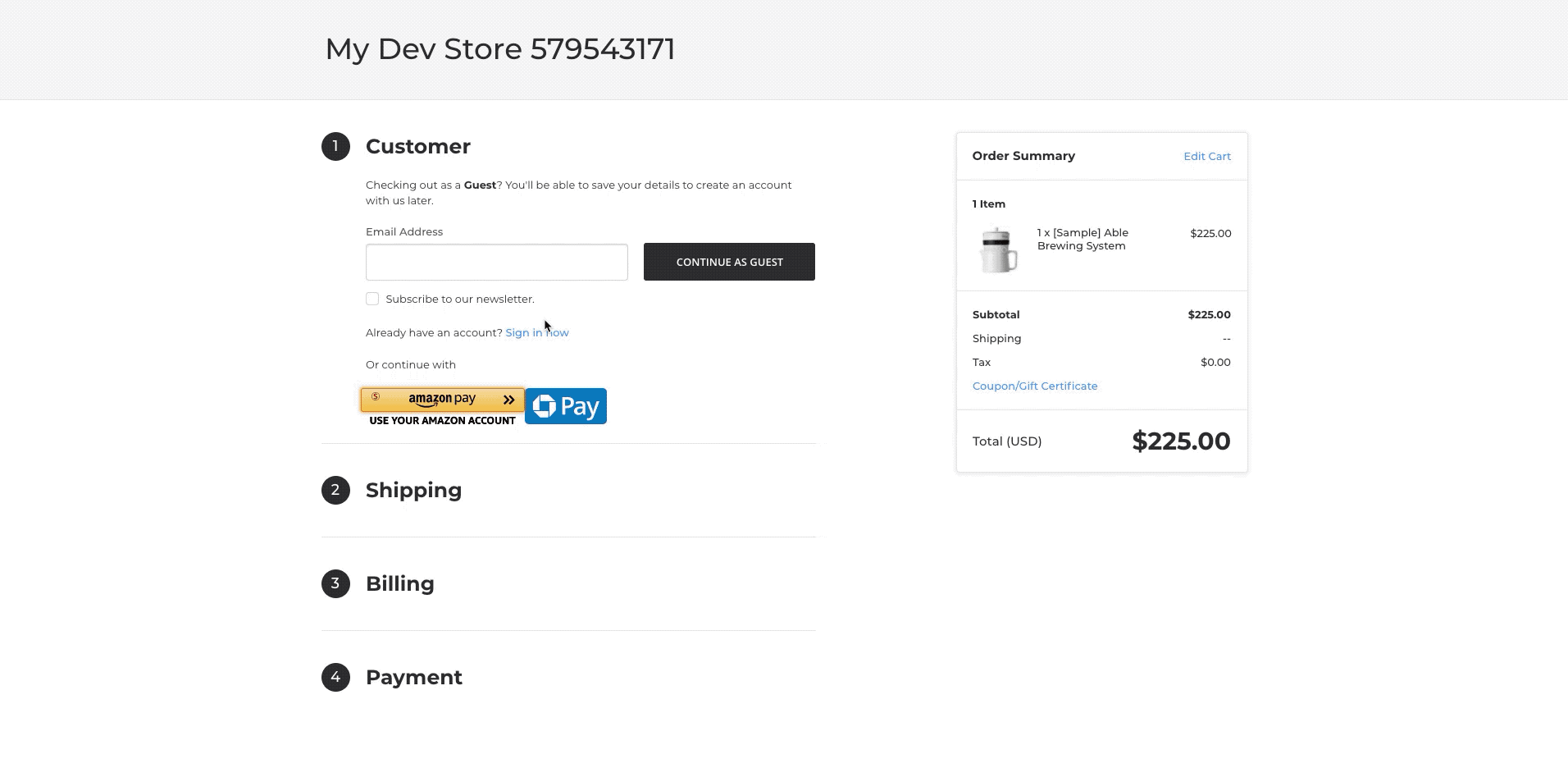 Per requeriment of this new amazonpay version it has to show static addresses on bigcommerce side because that step is made in an amazon page.