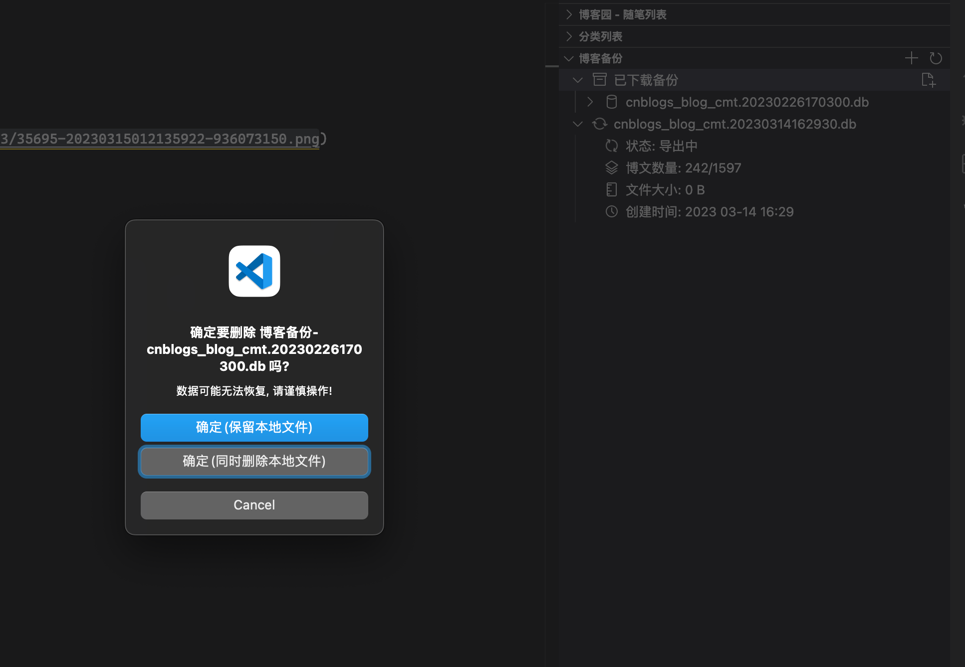 一个本地文件可以关联到已有的博客园博文,VSCode打开本地文件,在右键菜单中点击关联博客园博文。