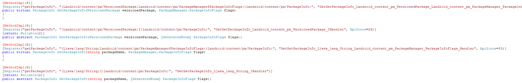 api-mergeloops through type members, its first check is to see if there is any existing member with the same name. If there isn't, it can short-circuit, add the new member, and move to the next one. If there is, we compare the existing API level member to the new API level one to see if it has been marked deprecated in this level, and if so we can add thedeprecated-sinceattribute.However, this initial existing member check was solely done on member name, not signature. If the member is a method, a later check finds the exact matching method with the same signature. We are performing the