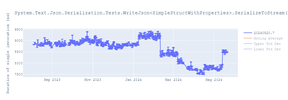 System.Text.Json.Serialization.Tests.WriteJson<SimpleStructWithProperties>.SerializeToStream(Mode: Reflection)