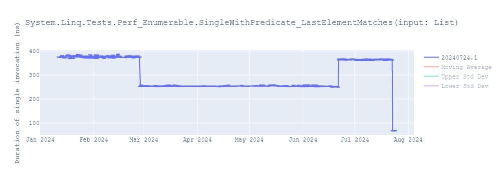 System.Linq.Tests.Perf_Enumerable.SingleWithPredicate_FirstElementMatches(input: List)