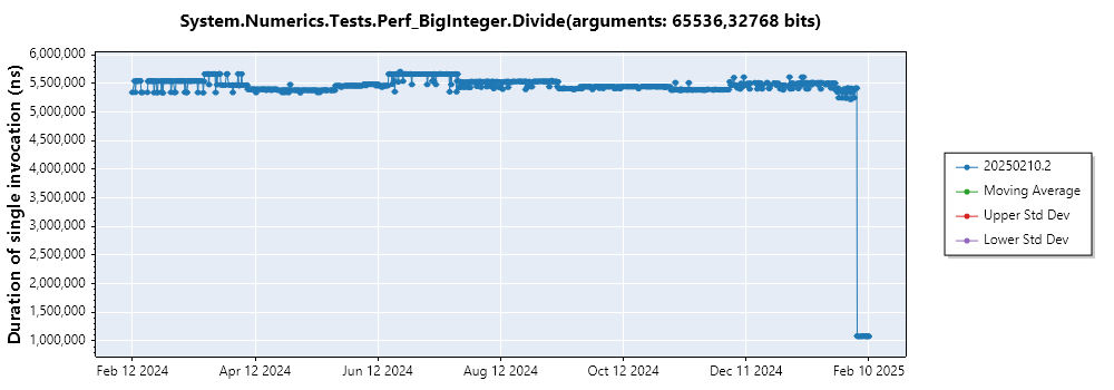 python3 .\performance\scripts\benchmarks_ci.py -f net8.0 --filter 'System.Numerics.Tests.Perf_BigInteger*'System.Numerics.Tests.Perf_BigInteger.Divide(arguments: 65536,32768 bits)