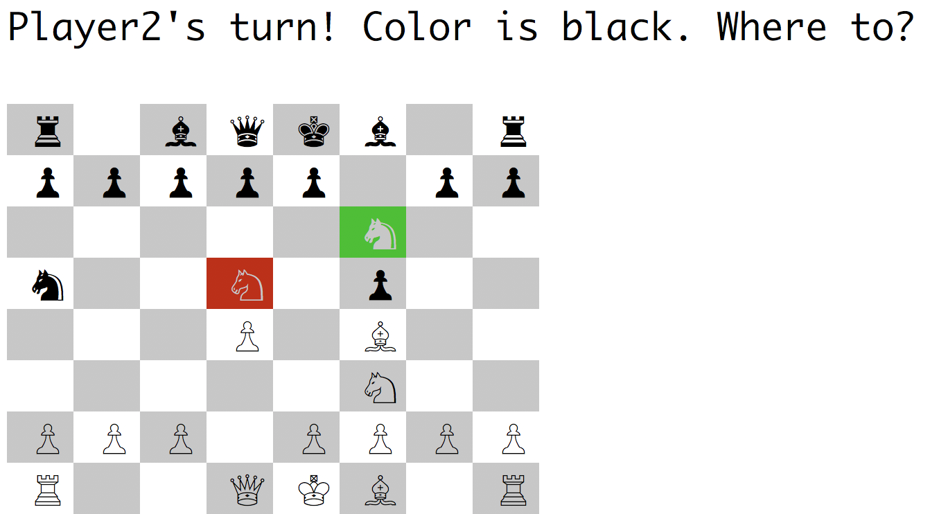 Each Piece also has a method to check for valid moves that will reject any moves that would leave the player in check: