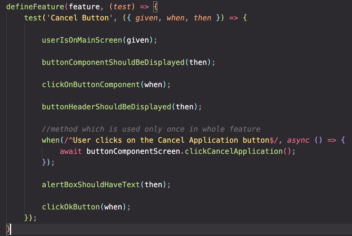 A question out of ignorance: if we have to implement and call the JS methods, can we get rid of Gerkin? It looks a repetition of the test description and they could go out of sync easily (or become maintenance burden). If we have JS methods with descriptive names, we can use a code-as-documentation approach and simplify the setup.