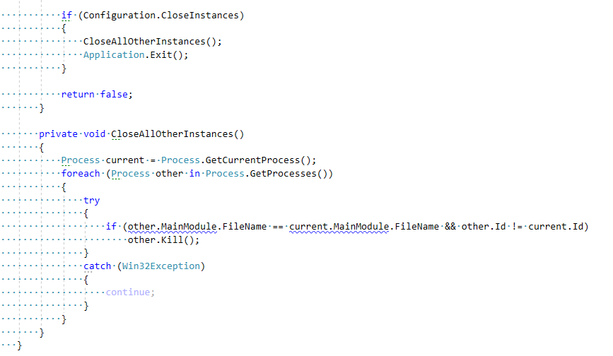 The snippet you picked closes all running instances of Git Extensions. The issue referes to instances of Plugin Manager. |