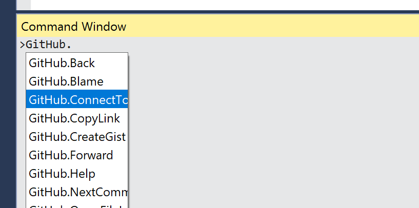 Command Windowif you start typingGitHub.Customize...,Keyboard...and start typingGitHubinShow commands containing.Future PRs