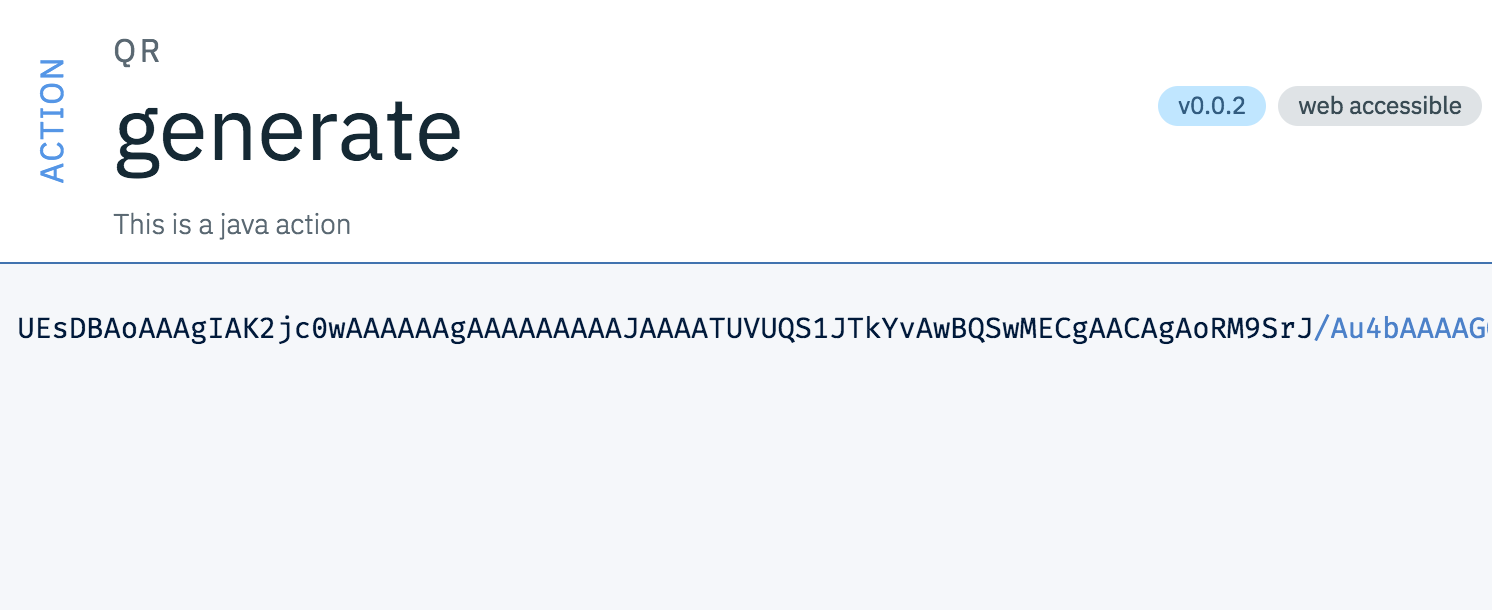 deploying a binary actions and then viewing it in the shell will show the base64 string as in the screenshot. (this is based on this repo https://github.com/rabbah/wsk-qr).