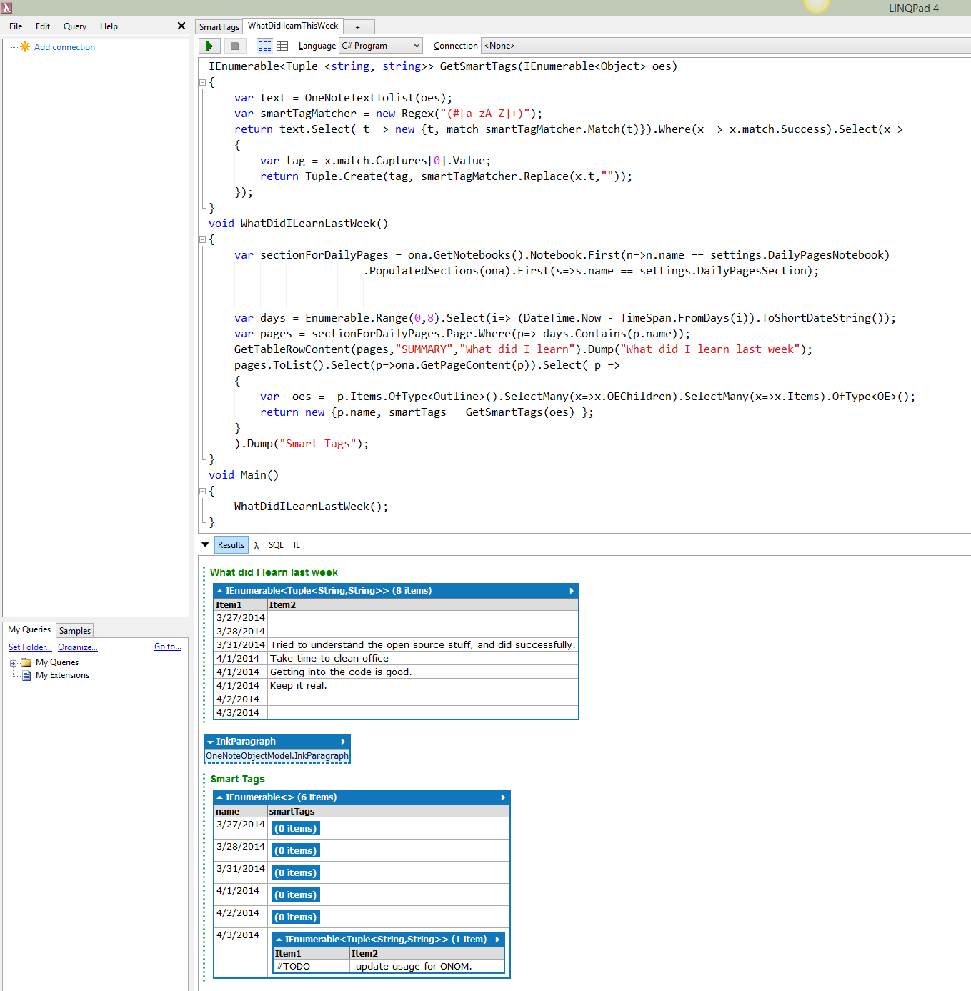 - Linqpad\Snippets - Snippets in Linqpad allowing for easy OneNote experimentation.