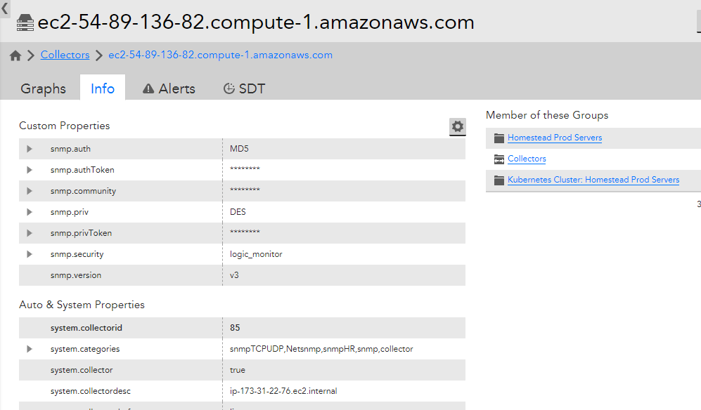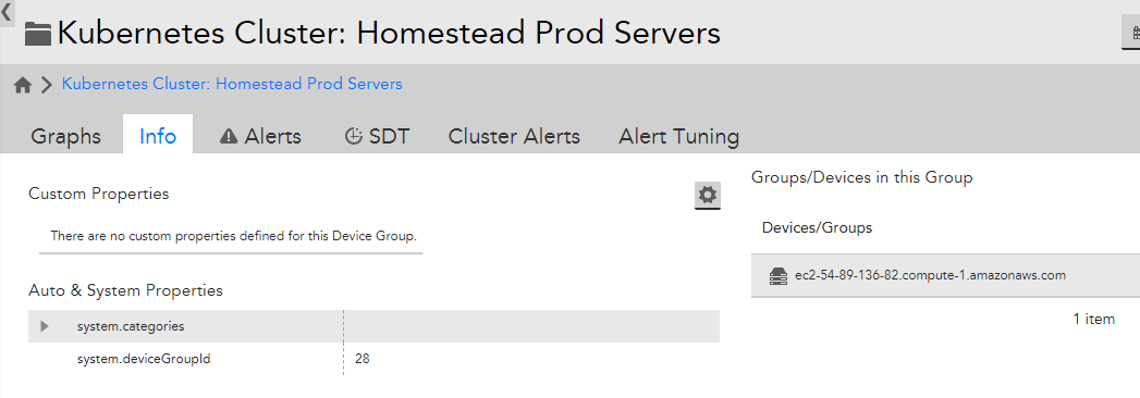 I've included screenshots of the device associated with the given Collector Description and Device Group, as well as the "Kubernetes Cluster: Homestead Prod Servers" Device Group.