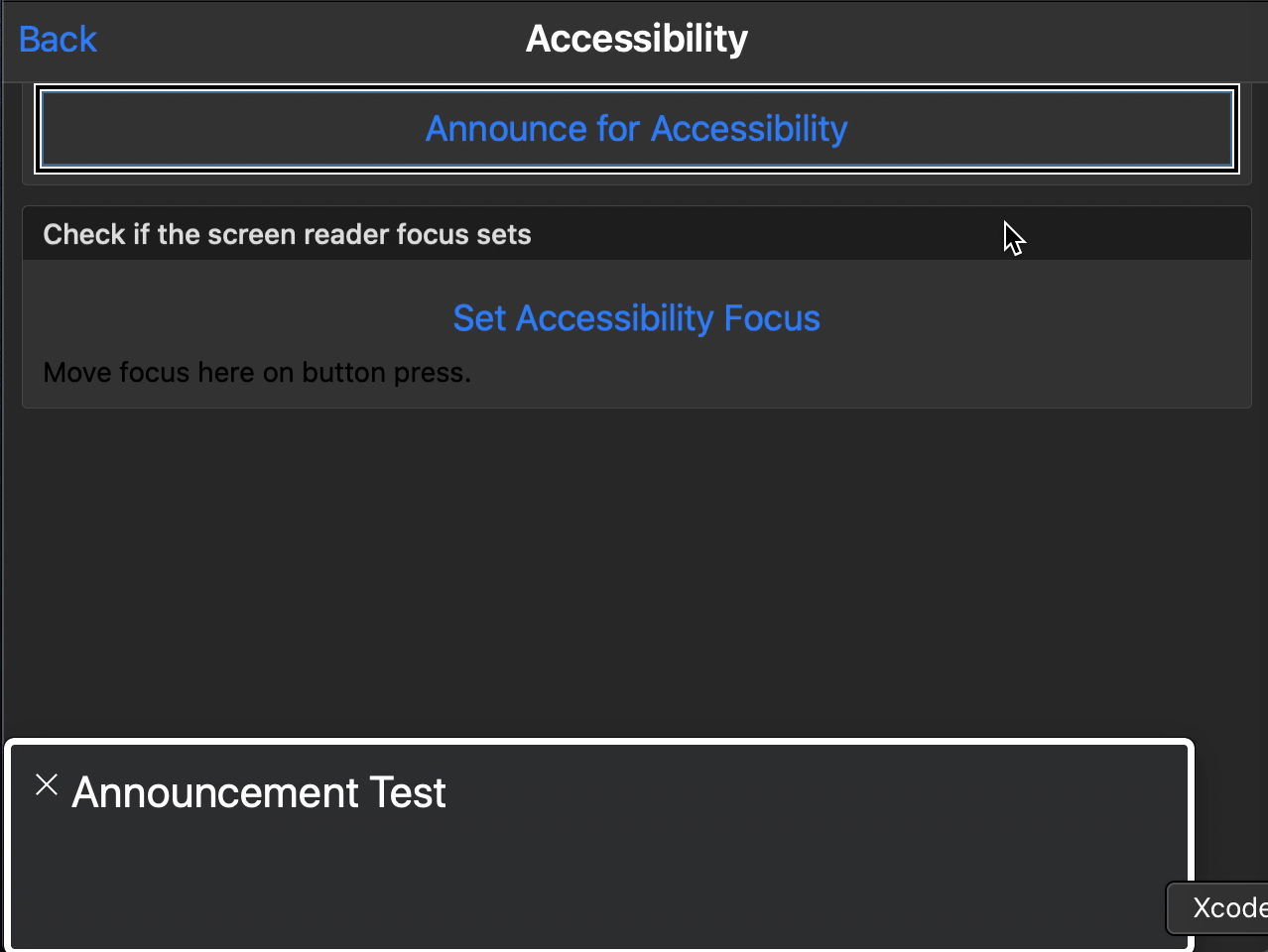 When the MacOS fork was made all the AccessibilityInfo functionality was stubbed out because the iOS Accessibility APIs are different from the MacOS APIs. I've filled back out the functionality for announceForAccessibility.