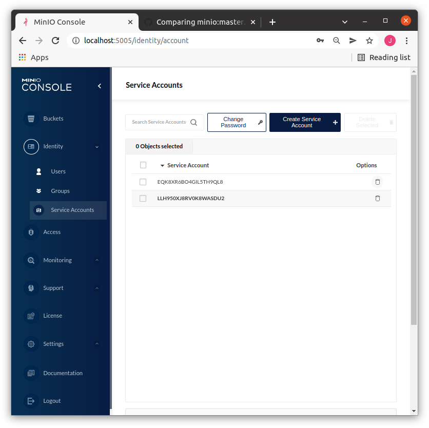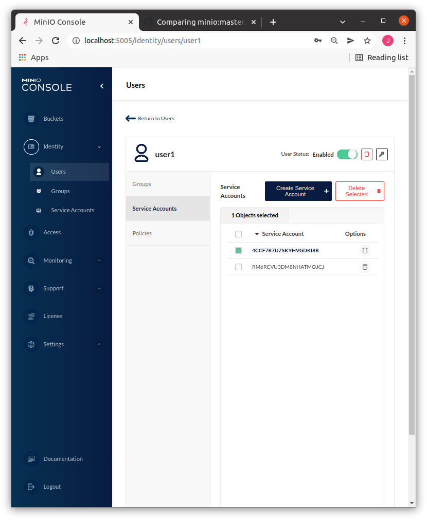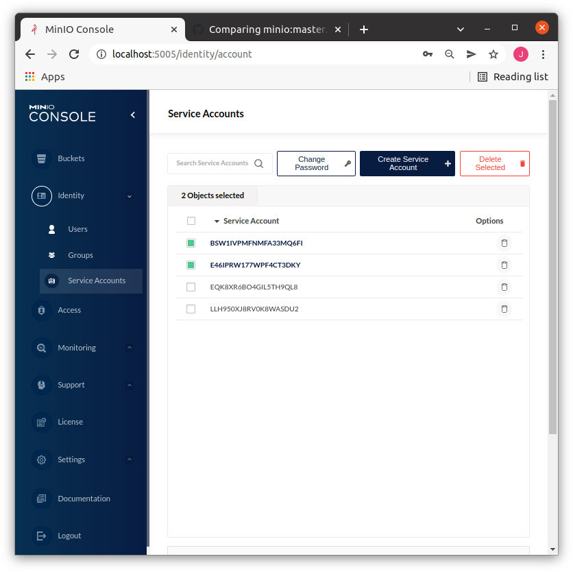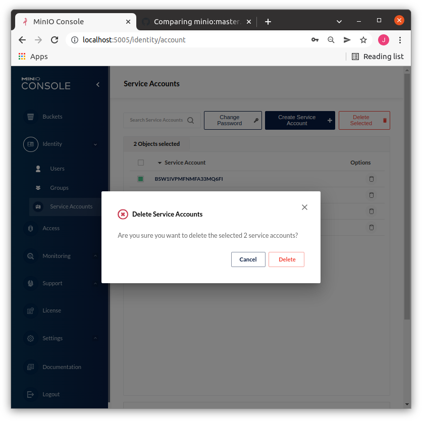 What does this do: Adds selector UI and Delete Selected button to allow user to select and delete multiple Service Accounts. Closes #469