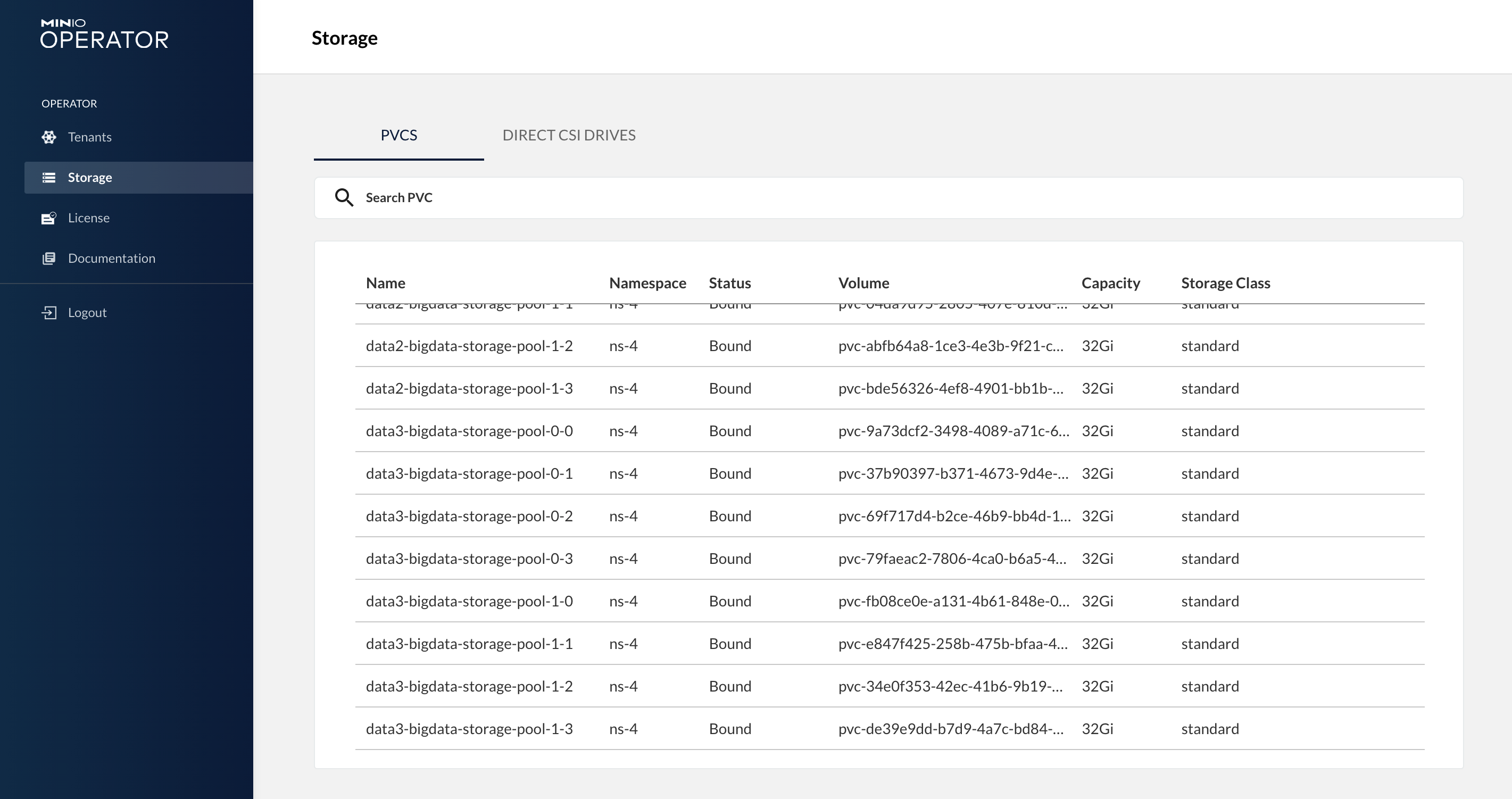 Adds PVCs section (1st step to PVCs management) & direct CSI panel to operator console