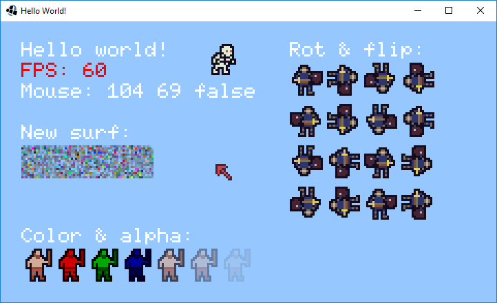 - Super simple API, just a bunch of methods for drawing, playing sound, handling input, etc.