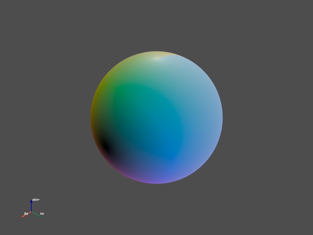 cplot can also plot functions on the Riemann sphere, a mapping of the complex plane to the unit ball.