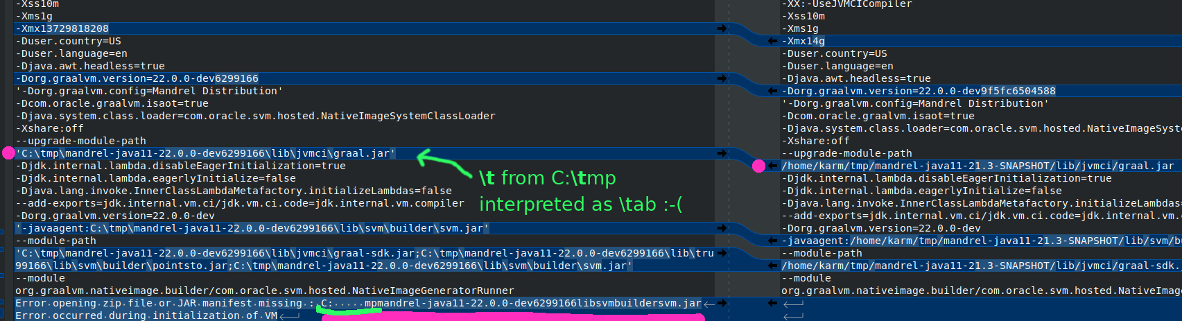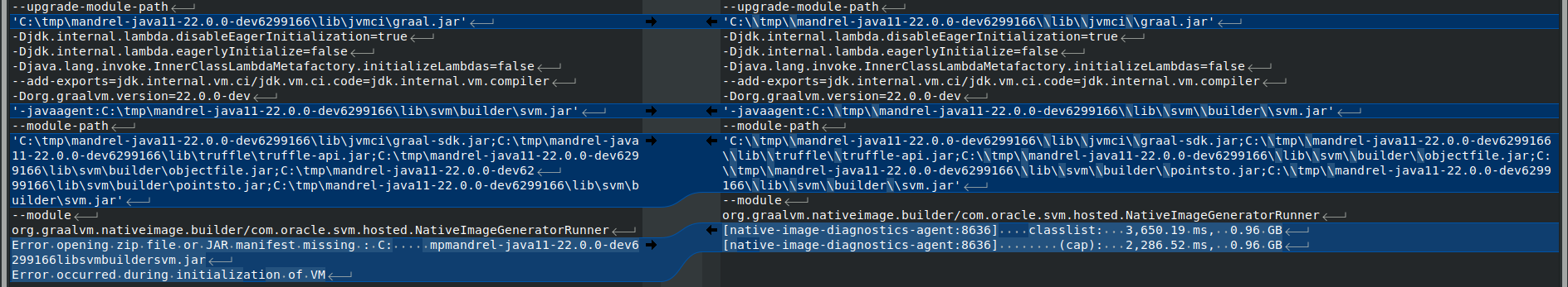 Hi @jerboaa, thanks for reporting and looking into this bug! It would look something like this: diff --git a/substratevm/src/com.oracle.svm.driver/src/com/oracle/svm/driver/NativeImage.java b/substratevm/src/com.oracle.svm.driver/src/com/oracle/svm/driver/NativeImage.java
