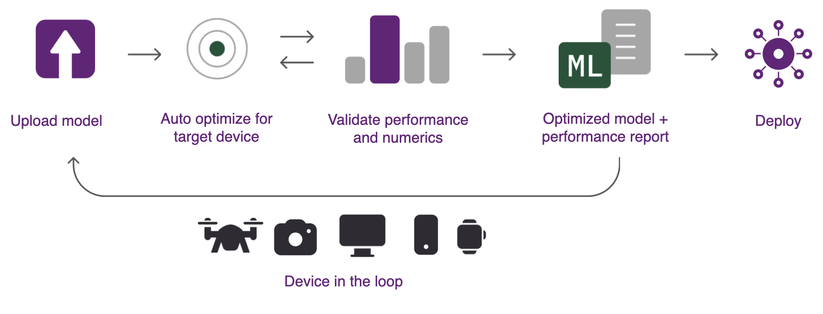 - Profiles the model on-device on a cloud hosted Qualcomm® device.