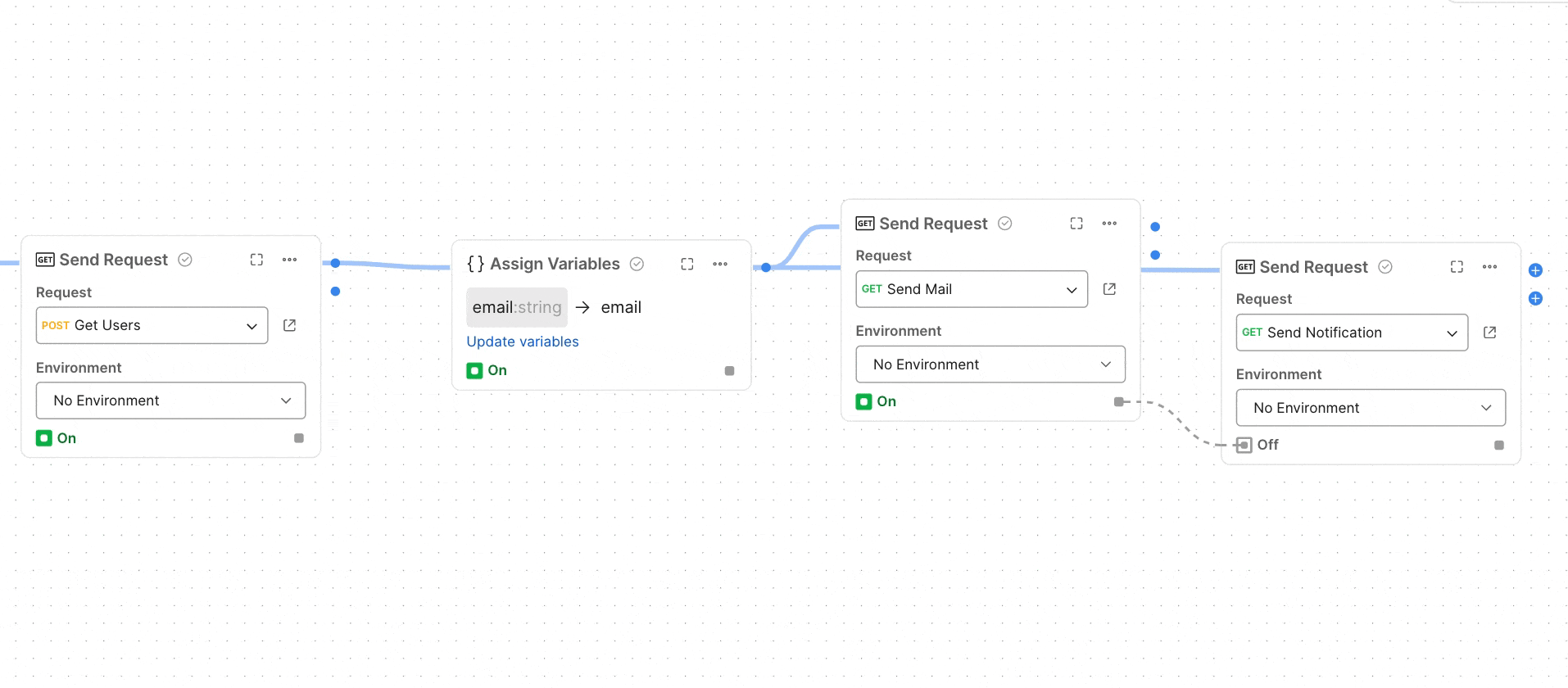 When we started designing flow language, we added an environment within the language itself. This means that users no longer had to piggyback on the environment variables to send data from one request to another request. They could do it just by connecting two blocks with a connection.