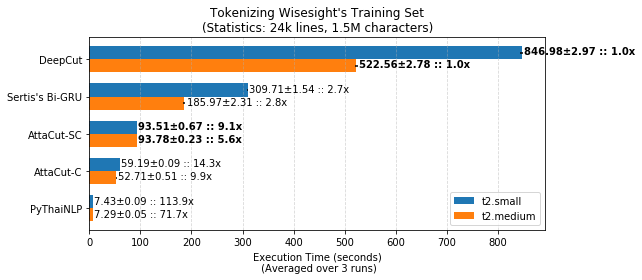 For better efficiency, we recommend using attacut-cli. Please consult our Google Colab tutorial for more detials.