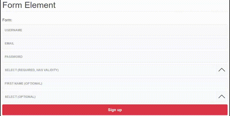 The input will be rendered based on the respective types previously mentioned. If the type does not match any of the available inputs, a console.warn will trigger. |