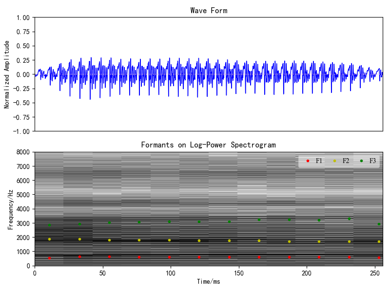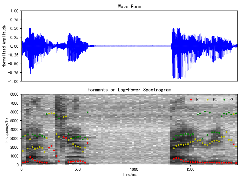 本程序./audios路径下有两个语音文件:“audio_raw.wav”(汉语:蓝天 白云)和“ae.wav”(英语单元音:[æ]),分别基于这两个语音文件运行程序,会得到以下文件和图形输出,待我一一介绍:
