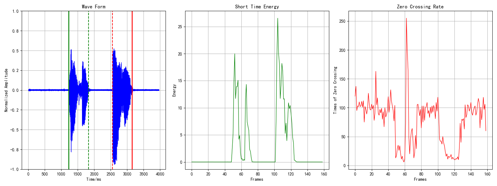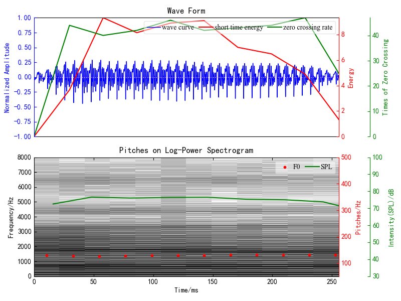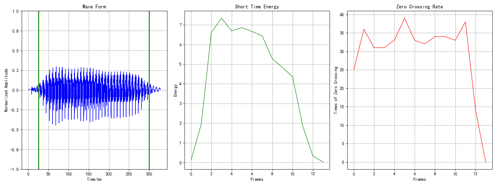此外,程序也包括一些语音的预处理部分:预加重、分帧、加窗、FFT;基于双门限法的语音端点检测;声谱图提取。