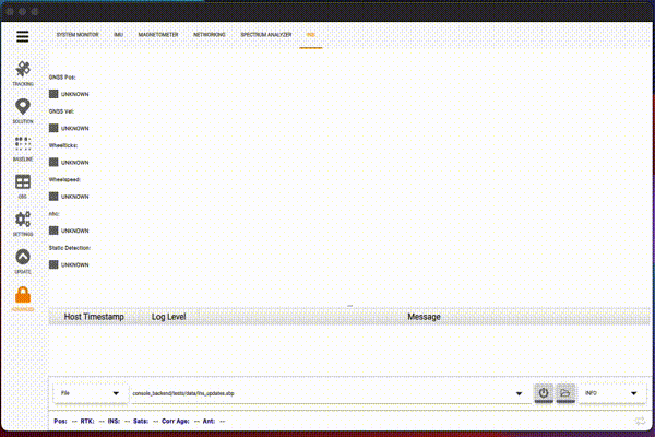 It's difficult to see what's on the screen, zoom-in is blurry. Can we schedule a demo and discussion? Typically INS tab would display status info, compass rose (yaw) and artificial horizon (roll and pitch). |