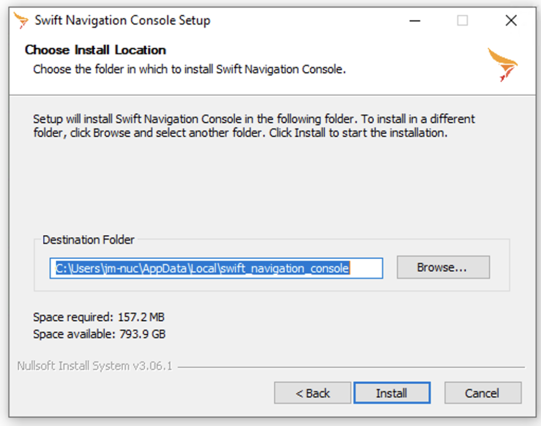 However... in the interest of time I think we should just revert back to using C:\Program Files\Swift Navigation\Swift Navigation Console