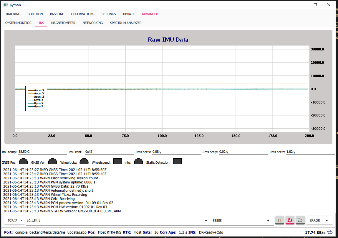 MsgInsUpdates { sender_id: Some(789), tow: 413750200, gnsspos: 16, gnssvel: 0, wheelticks: 0, speed: 0, nhc: 0, zerovel: 0 }