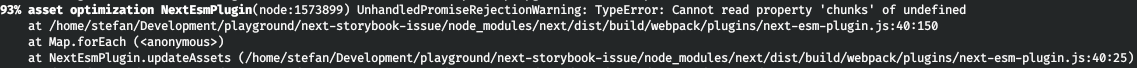 when using the experimental: { modern: true } config option in next.config.js, and configuring storybook with @next/plugin-storybook, starting storybook fails with: "NextEsmPlugin: TypeError: Cannot read property 'chunks' of undefined".